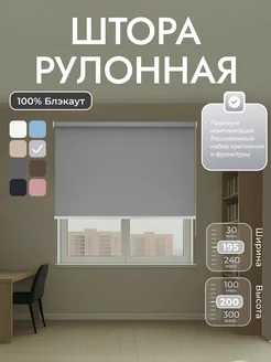 Рулонные шторы 195*200 см, БЛЭКАУТ светло-серый