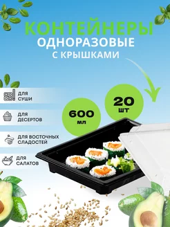 Контейнер пластиковый с крышкой под суши роллы 20 шт 600 мл