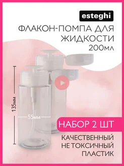 Флакон с помпой дозатором косметический 200 мл. 2 штуки