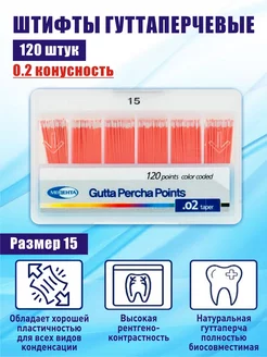 Штифты гуттаперчевые стоматологические 02 №15-40 120шт