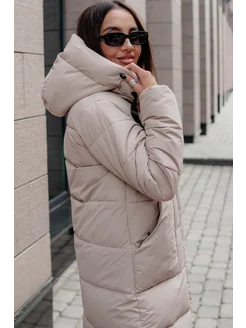 Пуховик длинный зимний с капюшоном