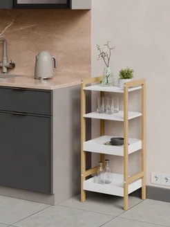 Стеллаж напольный деревянный для ванной комнаты и кухни