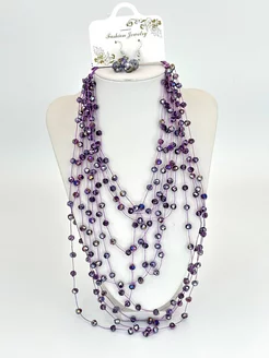 Комплект украшений колье многоярусное, серьги