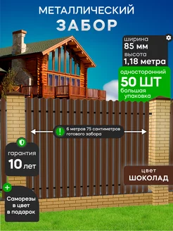 Забор металлический 120 см, 6,75 метра, 50 шт, коричневый