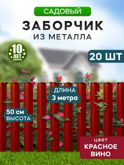 Заборчик металлический 50 см, 3 метра, 20 шт, красный
