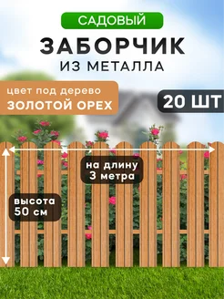 Заборчик металлический 50 см, 3 метра, 20 шт, золотой орех