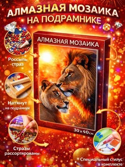 Алмазная мозаика на подрамнике Львы подарок на Новый год