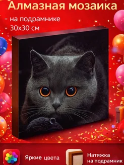 Алмазная мозаика на подрамнике кот подарок на Новый год