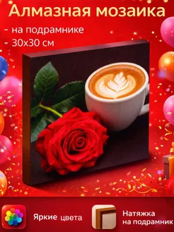 Алмазная мозаика на подрамнике Роза и кофе подарок на НГ