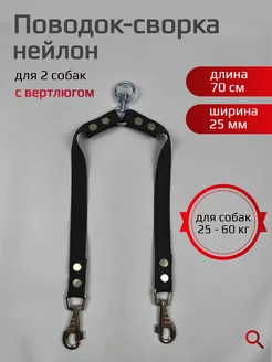 Сворка для 2 собак нейлон вертлюг 70 см х 25 мм (черный)