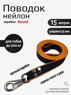 Поводок для собак нейлон бычий 15 м х 35 мм (оранжево-черн)