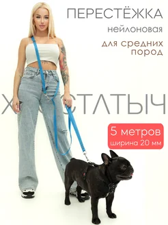 Перестежка для собак прошитый нейлон 5 м х 20 мм (голубой)