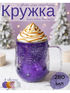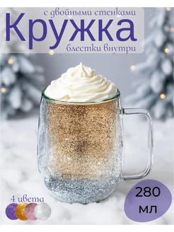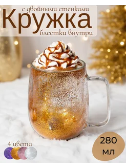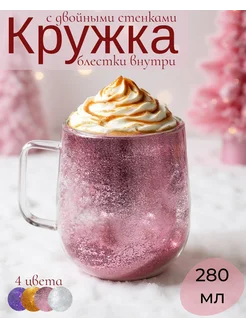 Кружка стеклянная розовая сердечко на дне 400 мл