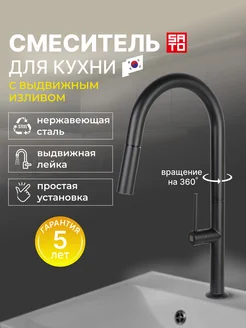 Черный смеситель для кухни IK003126-3 с выдвижной лейкой