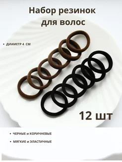 Резинки для волос 12 шт коричневые черные