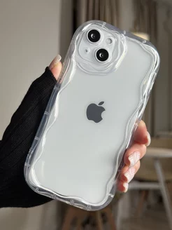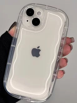 Чехол прозрачный на Iphone 14 объемный волнистый