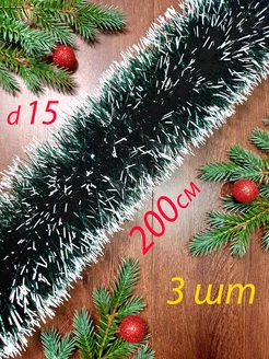 Мишура зеленая хвойная диаметр 9см, 200см, 3шт