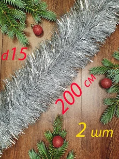 Новогодняя мишура серебристая 2 шт, диаметр 15см, 200см