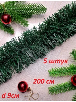 Мишура зеленая хвойная диаметр 9см, 200см, 5 шт