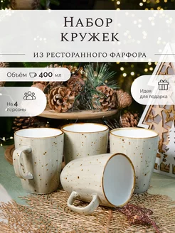 Набор из 4 фарфоровых кружек 400 мл