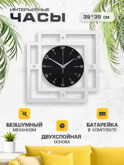 Часы настенные квадратные бесшумные черно-белые