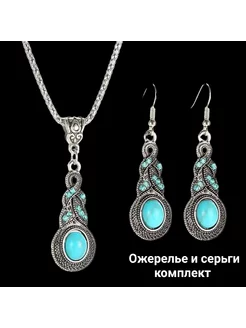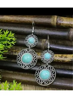 Серьги бижутерные Бирюза, в стиле Бохо с голубым камнем