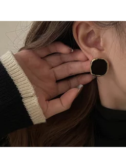 Серьги бижут. Бирюза, гвоздики с искусственным янтарем
