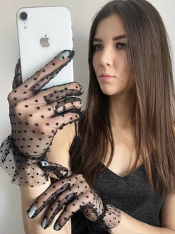 Перчатки женские в сетку прозрачные короткие в горошек