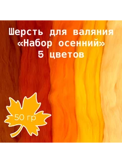 Шерсть натуральная для валяния "Набор осенний" 50гр. 5 цв