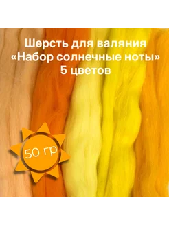 Шерсть натуральная для валяния "Набор солнечный" 50гр. 5 цв