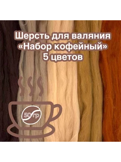 Шерсть натуральная для валяния "Набор кофейный" 50гр. 5 цв