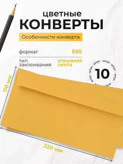 Конверт бумажный цветной Е65 220х110, 10 штук