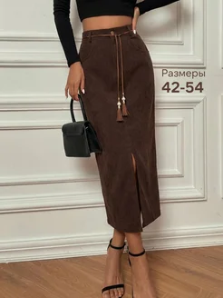 Юбка женская карандаш вельветовая с разрезом миди
