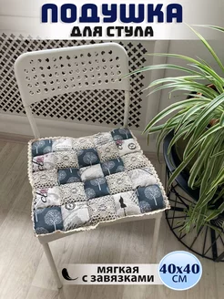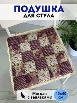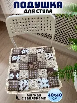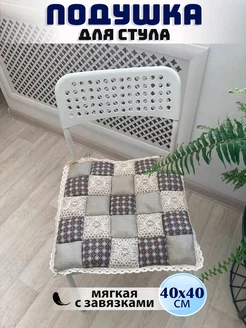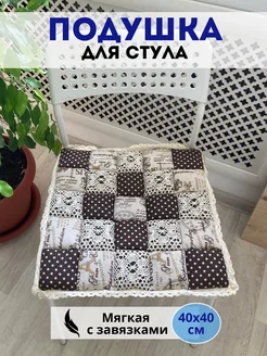 Подушка на стул Пэчворк, сидушка 40 на 40, с завязками
