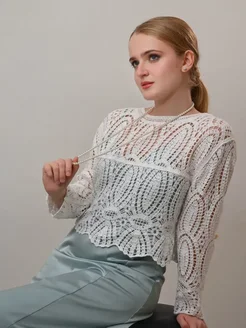 Кофта лонгслив нарядная ажурная кружевная сетка