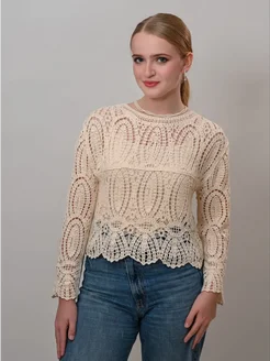Блузка вязаная летняя нарядная ажурная с коротким рукавом