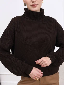 Свитер вязаный оверсайз с горлом объемный