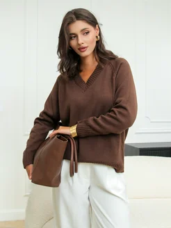 Пуловер вязаный оверсайз с v-образным вырезом