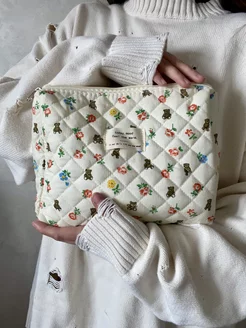 Хлопковая большая стеганая косметичка с мишками
