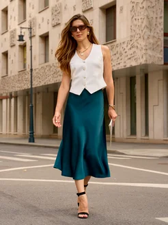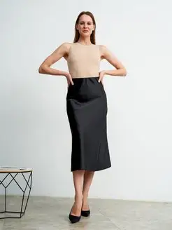 Юбка миди атласная трапеция а-силуэт с молнией