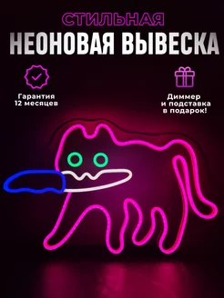 Неоновая вывеска "Кот с ножом"