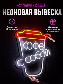 Неоновая вывеска "Кофе с собой 54х70", светильник