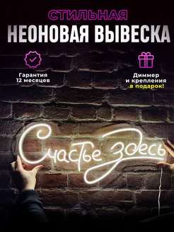 Неоновая вывеска "Счастье здесь", светильник