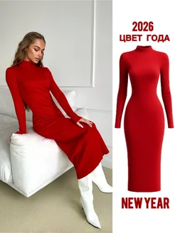 Платье трикотажное лапша макси новогоднее