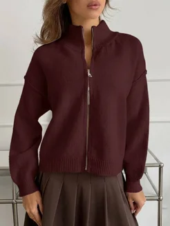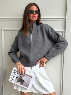 Кардиган теплый укороченный на молнии