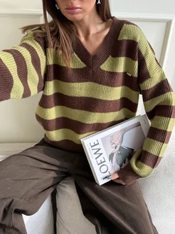 Свитер женский теплый оверсайз в полоску