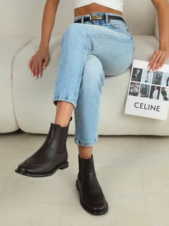 Сапоги трубы демисезонные на низком каблуке со сборками