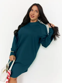 Трикотажное платье повседневное оверсайз с рукавом