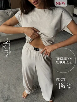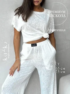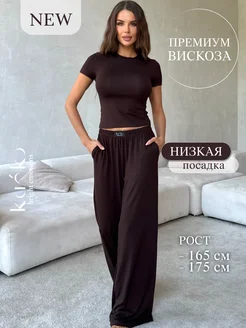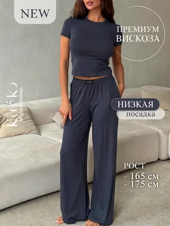Мягкая пижама со штанами палаццо и футболкой хлопок
