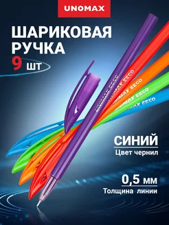 Ручки шариковые синие для школы, набор 9 штук, 0,5 мм